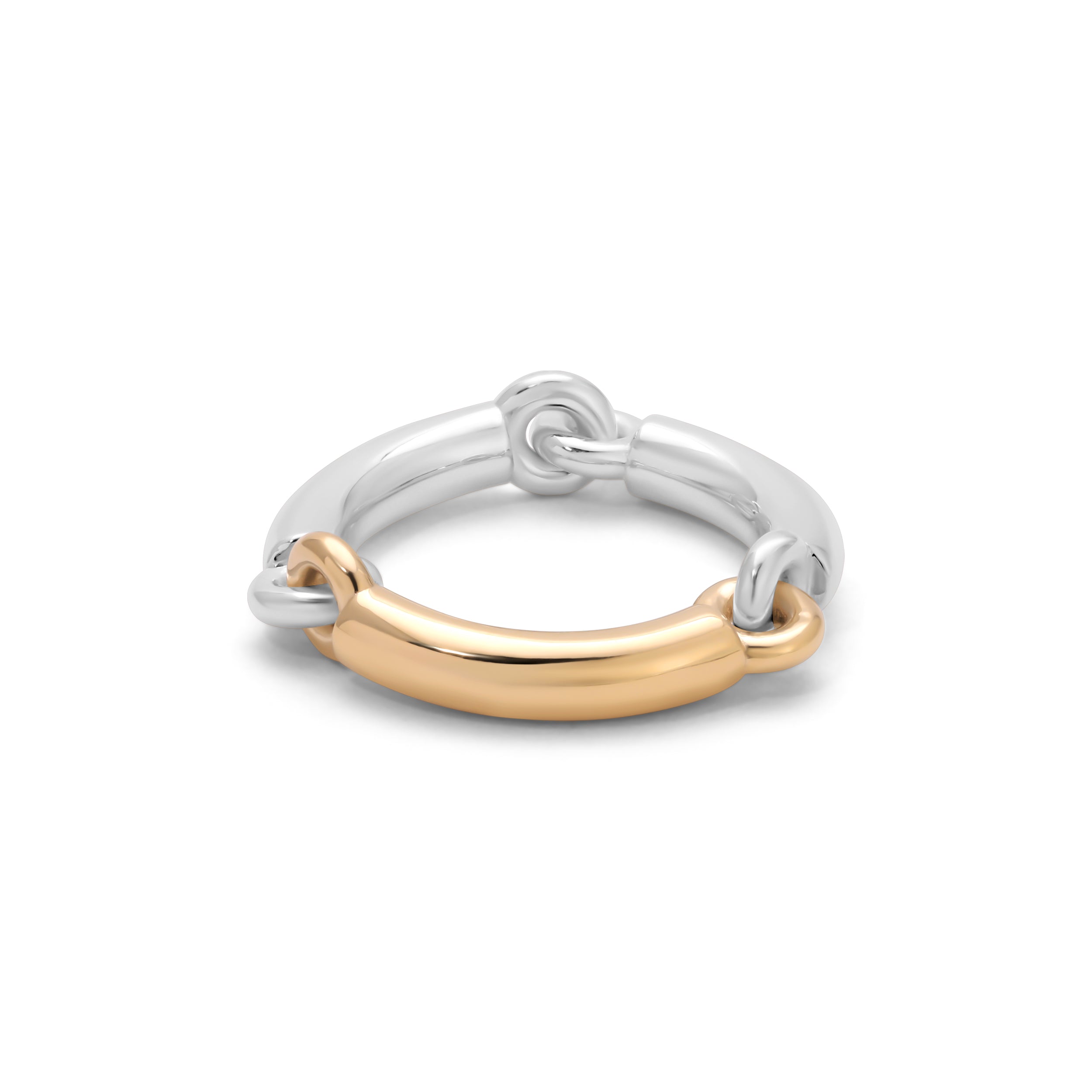 Harnessing planetary energy, the Solstice Ring combines 18k yellow gold and sterling silver into a striking mixed-metal design. Crafted as a solid piece, it serves as a timeless foundation for any collection. Whether worn alone or layered, this ring offers enduring strength and presence, making it a lasting symbol of empowerment for its wearer.