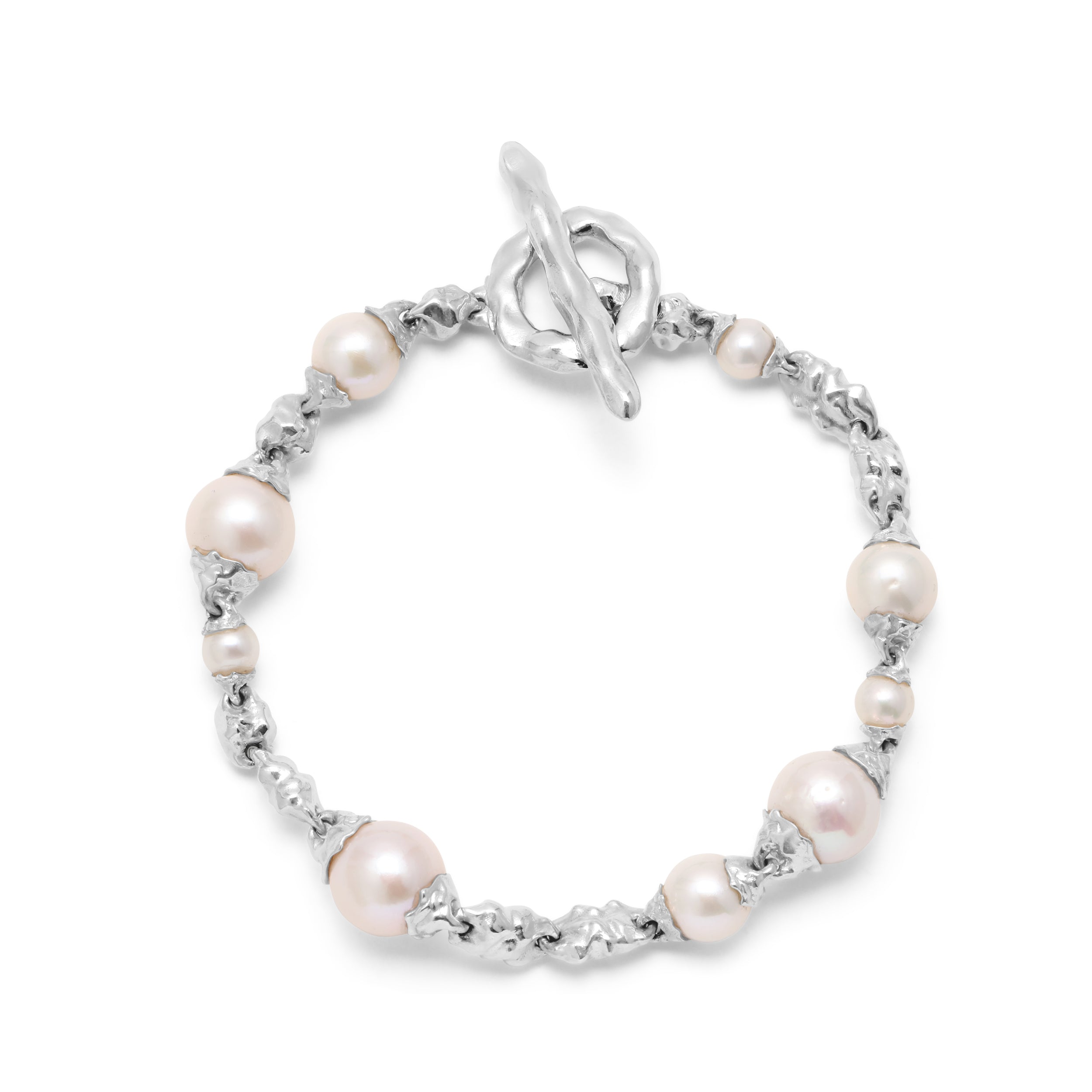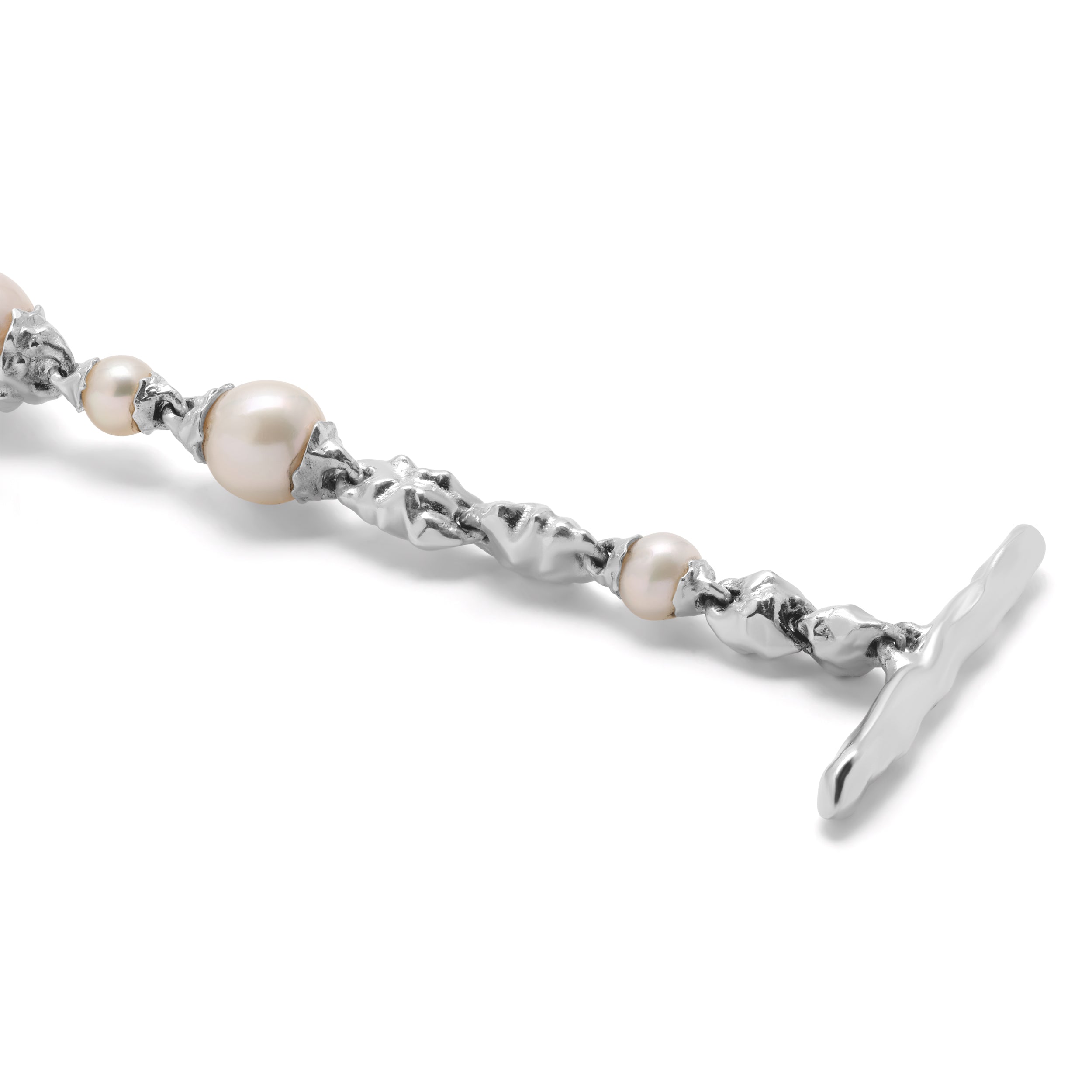 Elevate your style with the elegance of The Corollary Bracelet. Each of its 925 sterling silver links is expertly crafted for a flawless finish. Paired with luminous white pearls, this classic bracelet is the perfect finishing touch for any outfit. Experience timeless sophistication with The Corollary.