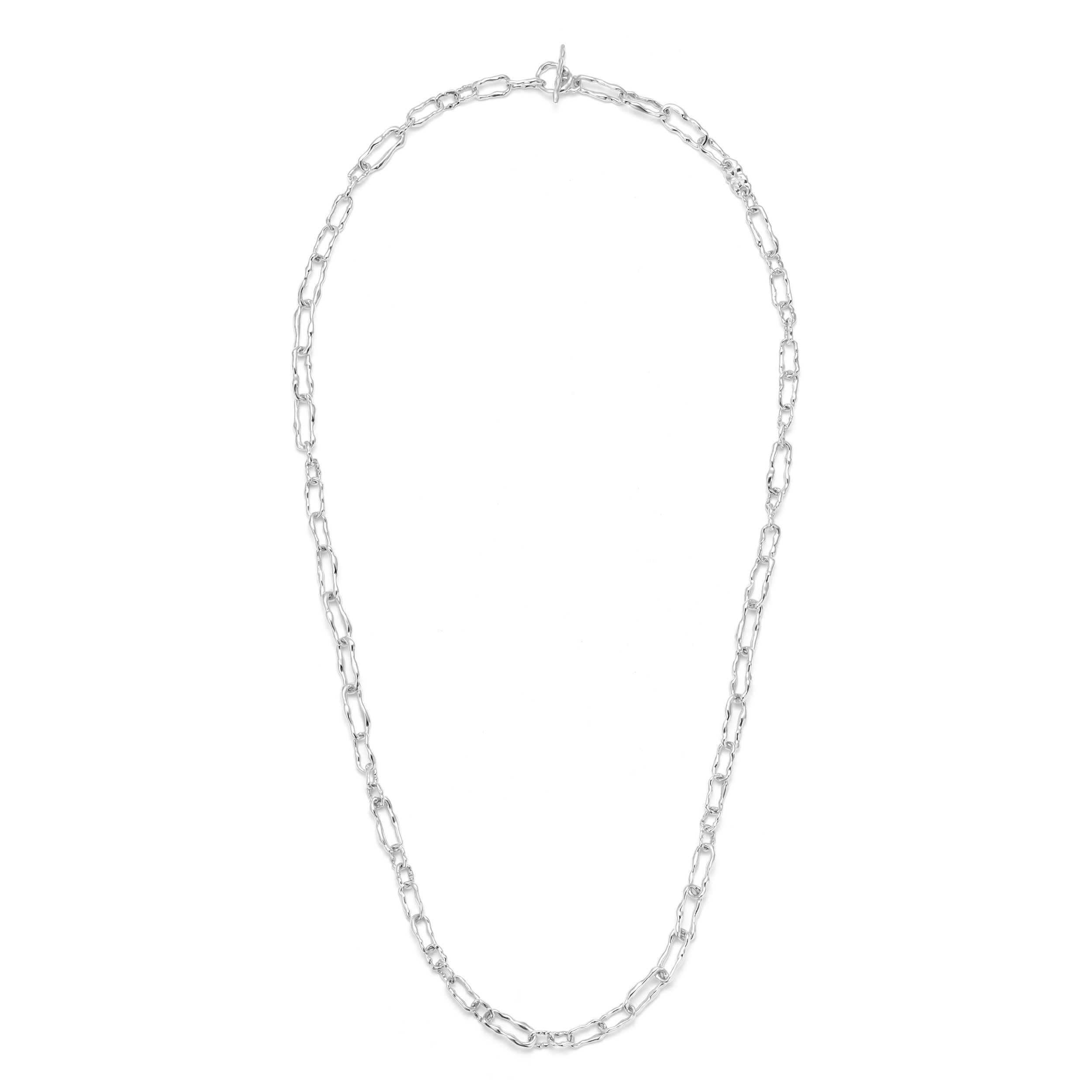 Experience the modern elegance of The Dryp Medium Necklace. Made with 925 sterling silver, this link necklace boasts an uneven edge for a unique touch. Effortlessly elevate any outfit with this versatile and high-quality accessory. Crafted for style and durability, the perfect addition to your jewelry collection.
