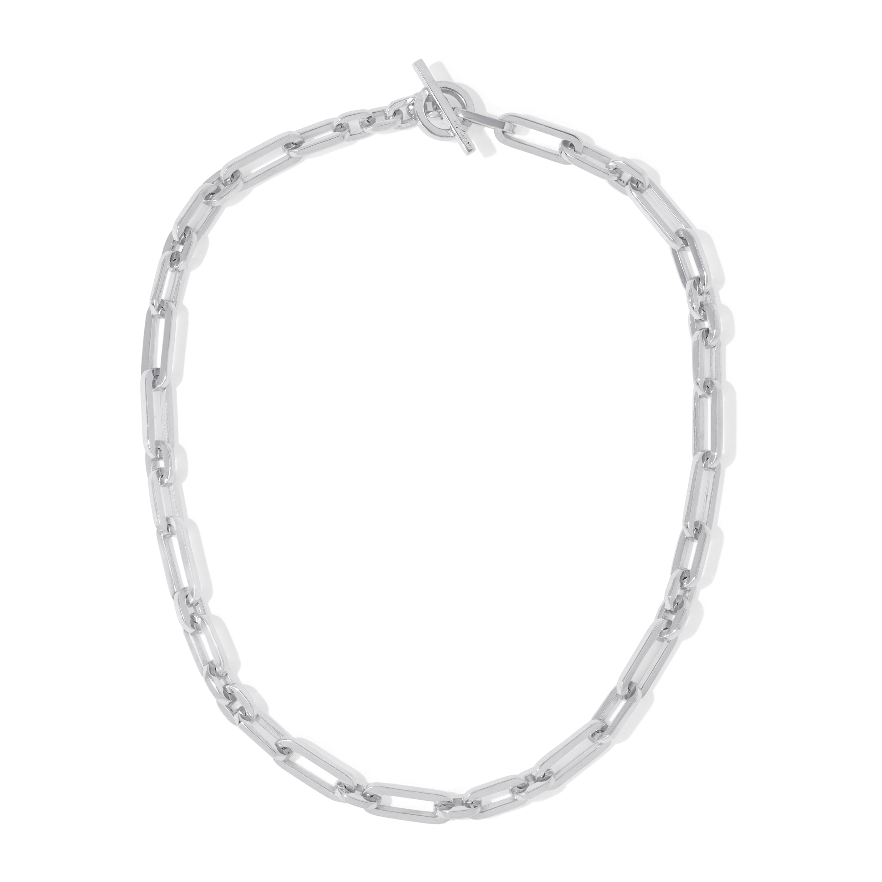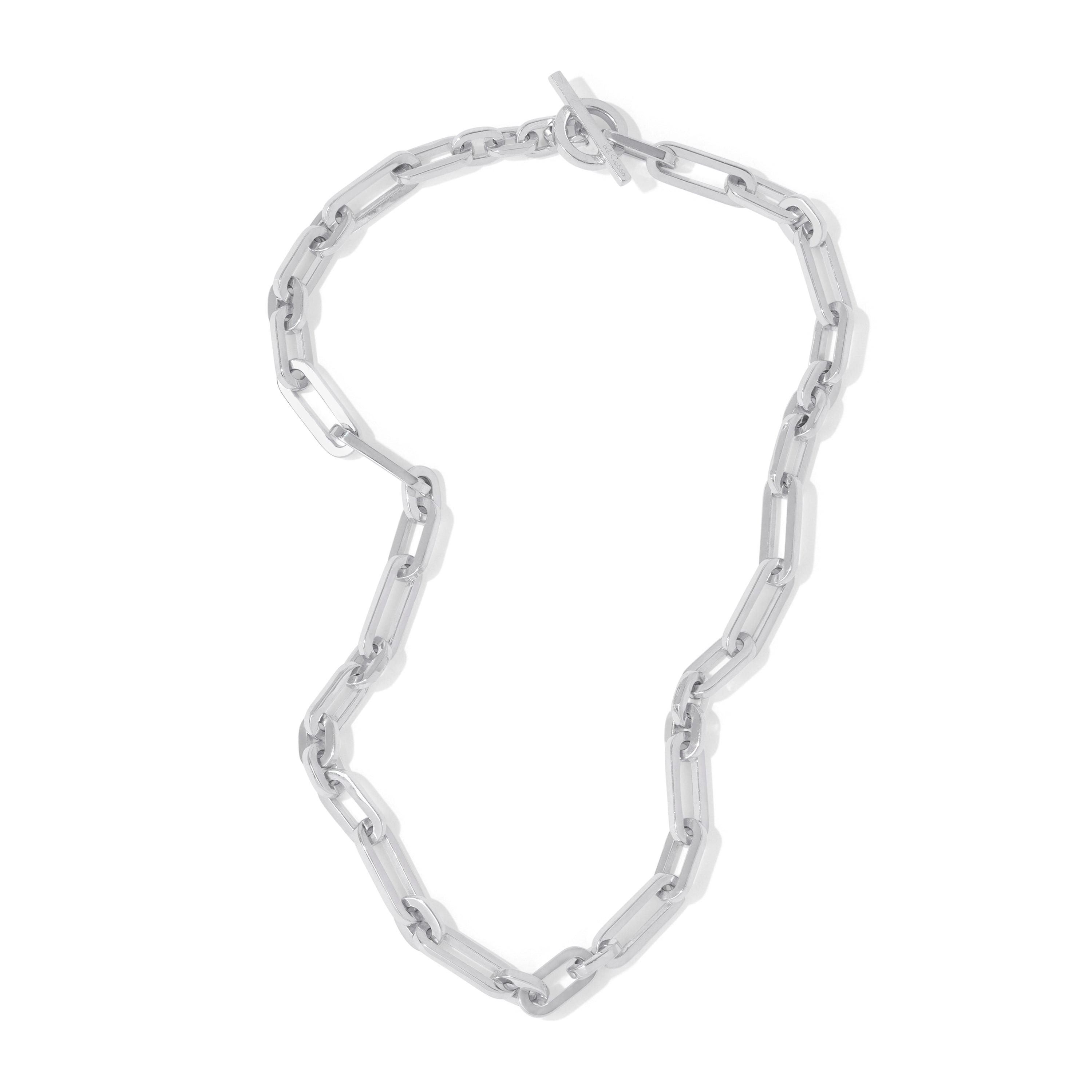 Embracing the design of the interlocking links of varying sizes, the solid 925 sterling silver pattern of the Trio Linka necklace is a bold statement piece. We suggest to wear it solo or stacked with other MAOR short necklaces for a modern and edgy look.