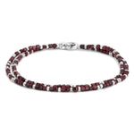 A layered composition of depth and Fire, the Vesta Stack brings together the Cord, Lurion in garnet, Aquila, and the Housa bracelets in a bold red expression. Worn as one, the four pieces create a dynamic interplay of texture, and tone designed to feel powerful, fluid, and distinctly your own.