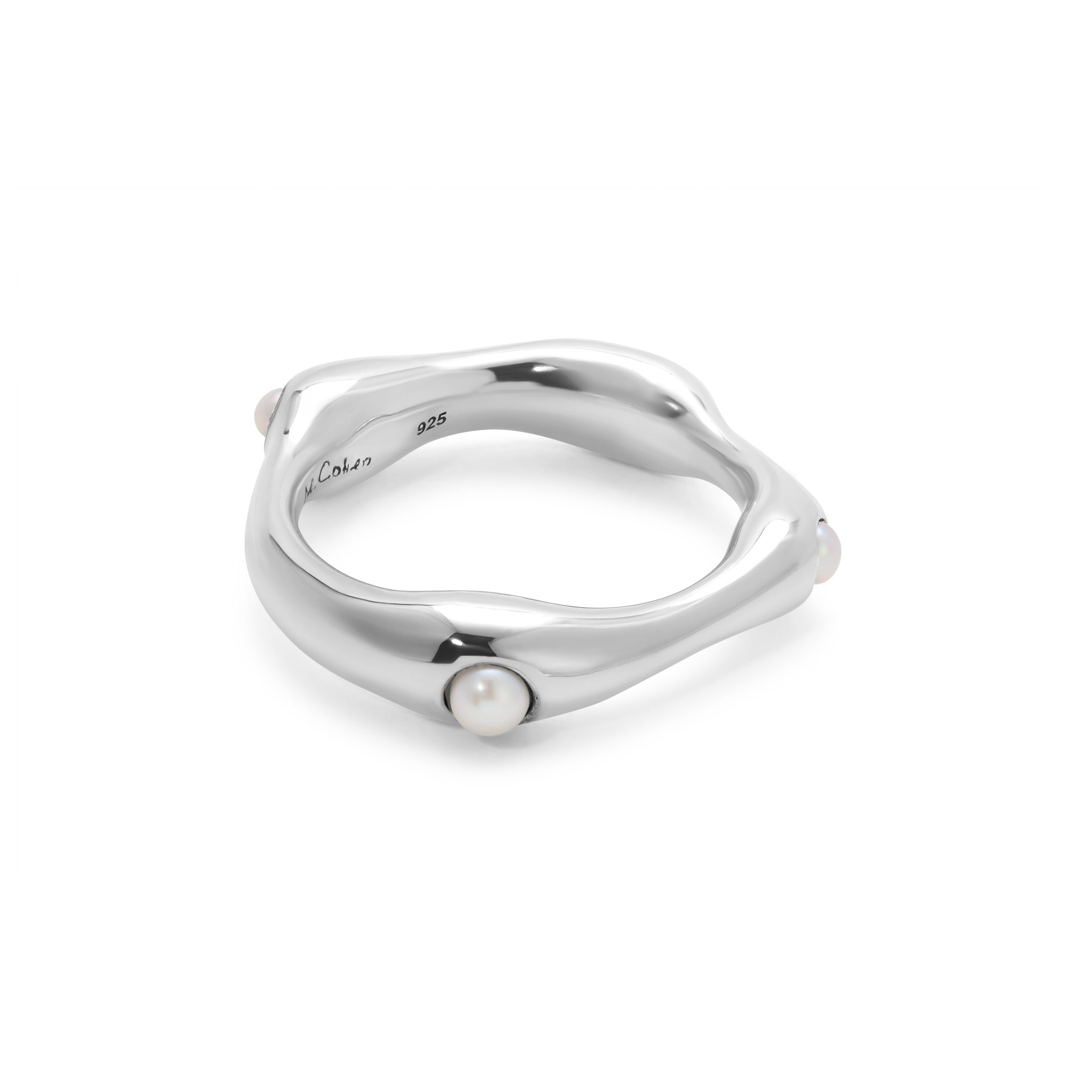 This Warp Ring is handcrafted from 925 sterling silver and features a unique and elegant white pearl. Perfect for adding a touch of sophistication to any outfit.